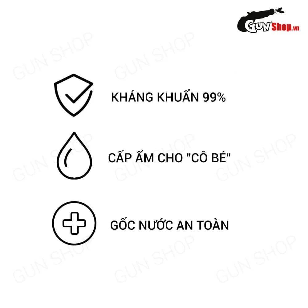 Song song với đó, gel bôi trơn còn làm dịu tình trạng kích ứng khi “cô bé” bị kích thích cuồng bạo trong quá trình nàng “ân ái” với bạn tình. Mỗi thành phần của sản phẩm đều được lựa chọn kỹ lưỡng để duy trì nồng độ pH ổn định cho âm đạo và cực kỳ an toàn đối với sức khỏe của người sử dụng.